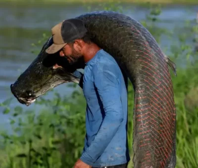 Leia MaisPor: Luiz Fernando Toledo | Crédito Foto: AFP via Getty Images. Um pescador carrega um pirarucu na Reserva de Desenvolvimento Sustentável (RDS) Mamira