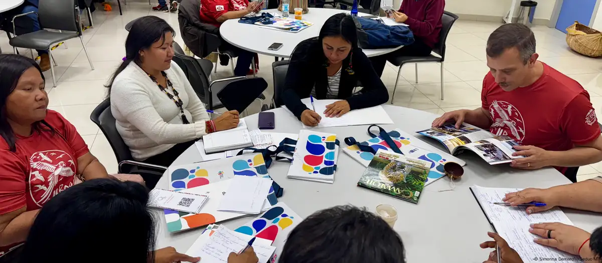 Por: Heloísa Traiano | Crédito Foto: Dw. Brasil. Cerca de 50 pessoas participaram de evento de formação pedagógica para professores indígenas do povo bororo em 2024, conectado ao desenvolvimento do aplicativo BILingo