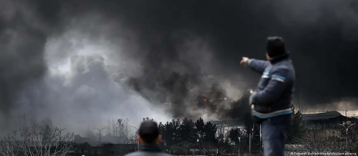 Por: Natalie Muller | Crédito Foto: Fatemeh Bahrami/Anadolu/picture alliance. Explosões em instalações petrolíferas causam nuvens de fumaça tóxica e chuva negra no Irã