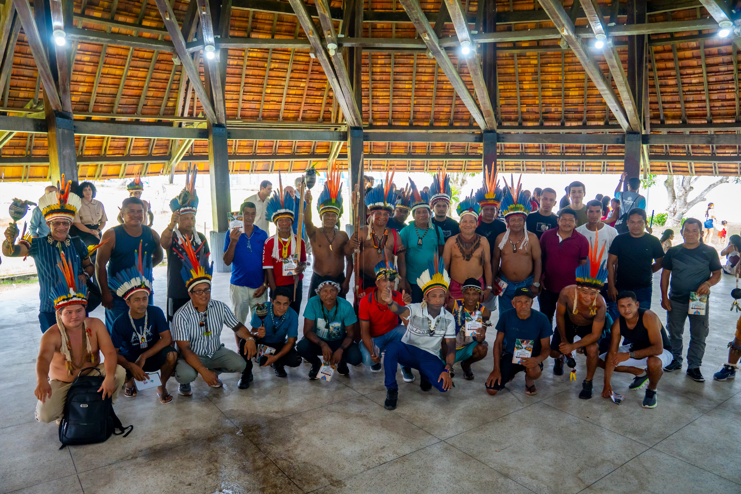 Documento que servirá como guia para futuros diálogos com o Povo Tembé, o Protocolo de Consulta do Território Indígena Alto Rio Guamá (TIARG) foi lançado nesta sexta-feira (27), em Belém. O projeto é fruto da parceria entre a etnia e o Programa Trópico em Movimento, da Universidade Federal do Pará (UFPA). A cerimônia de entrega, realizada no auditório do CAPACIT/UFPA, reuniu mais de 60 indígenas, pesquisadores envolvidos no projeto e representantes da Secretaria de Estado de Meio Ambiente e Sustentabilidade (SEMAS), da Secretaria dos Povos Indígenas (SEPI), da Universidade do Estado do Pará (Uepa) e do Instituto Federal do Pará (IFPA), além de lideranças do próprio território TIARG. Durante o evento, também houve a exibição do documentário “O Protocolo de Consulta do Povo Tembé – Guardiões da Floresta”.